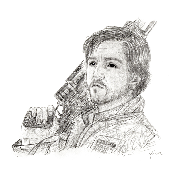Diego Luna, Cassian Andor dans Rogue One (dessin au crayon 2026)